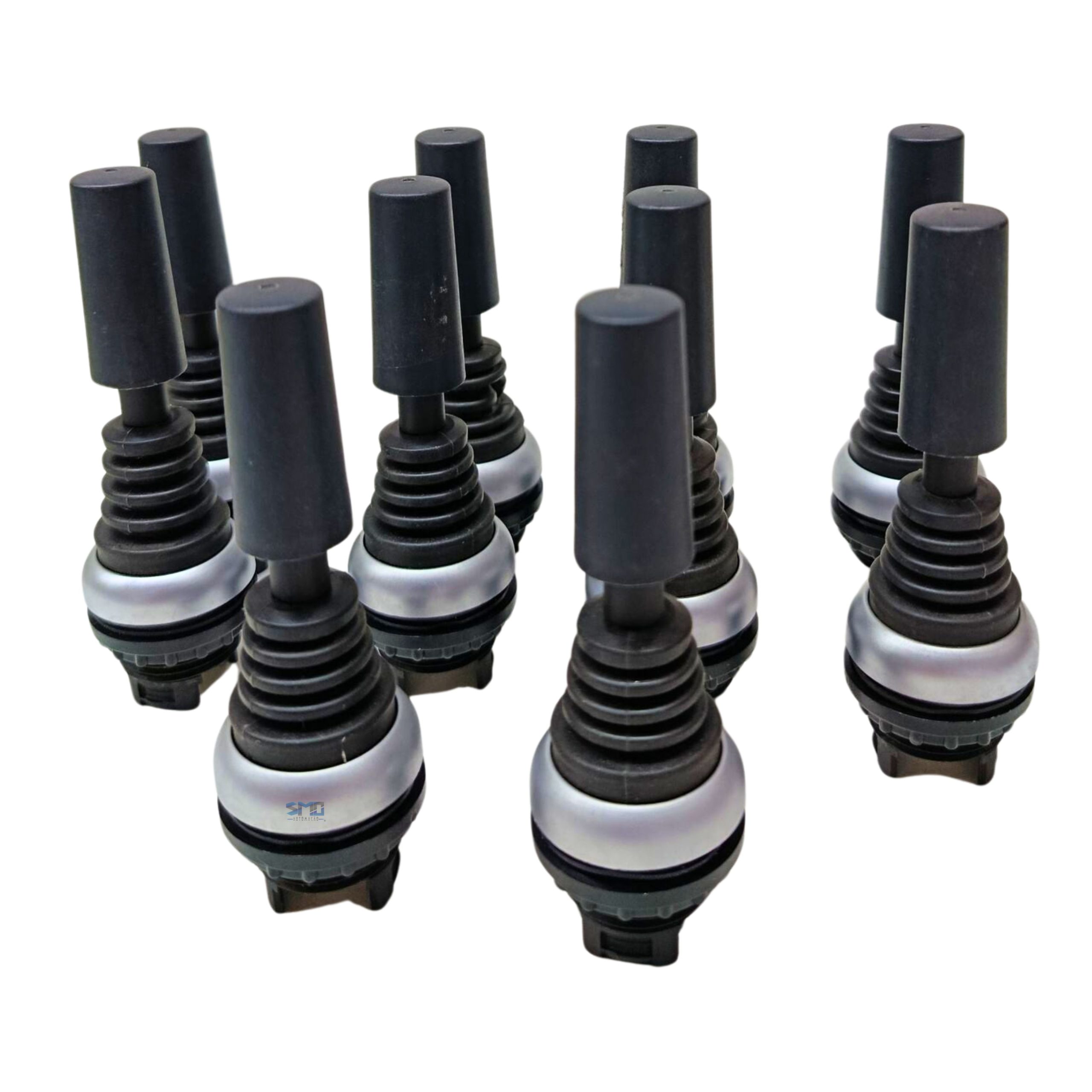 Kit contendo 10 unidades de Botão Joystick com Trava Moeller Duas Posições, produto novo, ideal para reposição, montagem de painéis elétricos e aplicações em comandos industriais. OBS.: SEM EMBALAGEM ORIGINAL