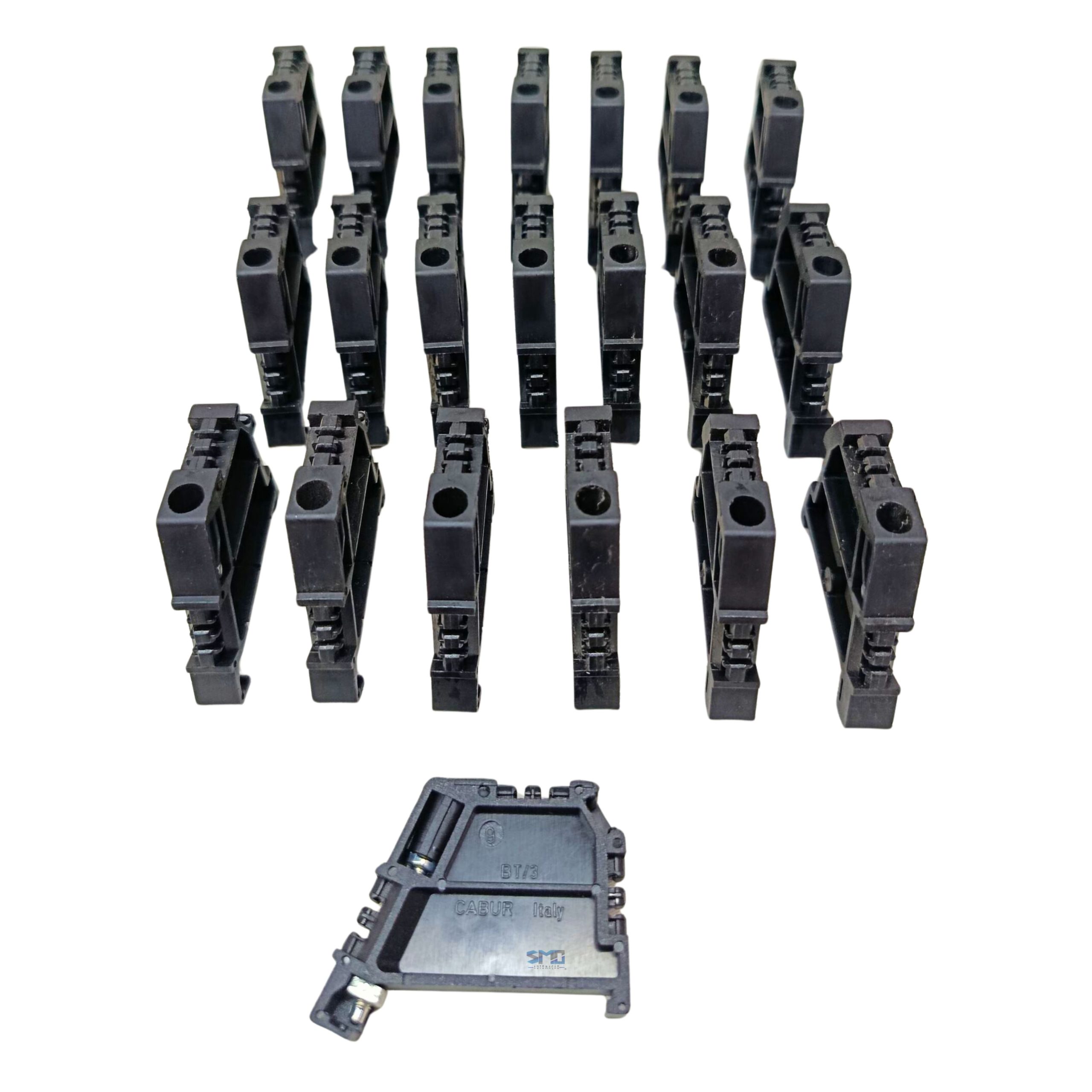 Kit contendo 21 unidades de Poste Final para Borne Cabur, modelo BT/3, produto novo, ideal para reposição, montagem de painéis elétricos e aplicações em comandos industriais. OBS.: SEM EMBALAGEM ORIGINAL
