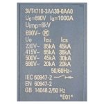 Disjuntor Tripolar 690V 1000A Siemens 3vt4710-3aa30-0aa0