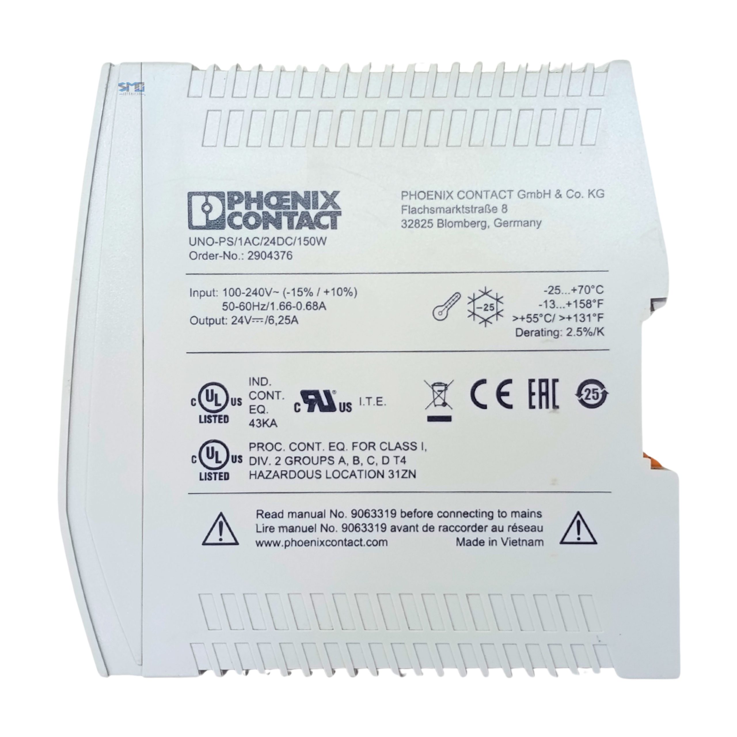 Fonte de Alimentação 24V 6,25A Phoenix Uno-ps/1ac/24dc/150w
