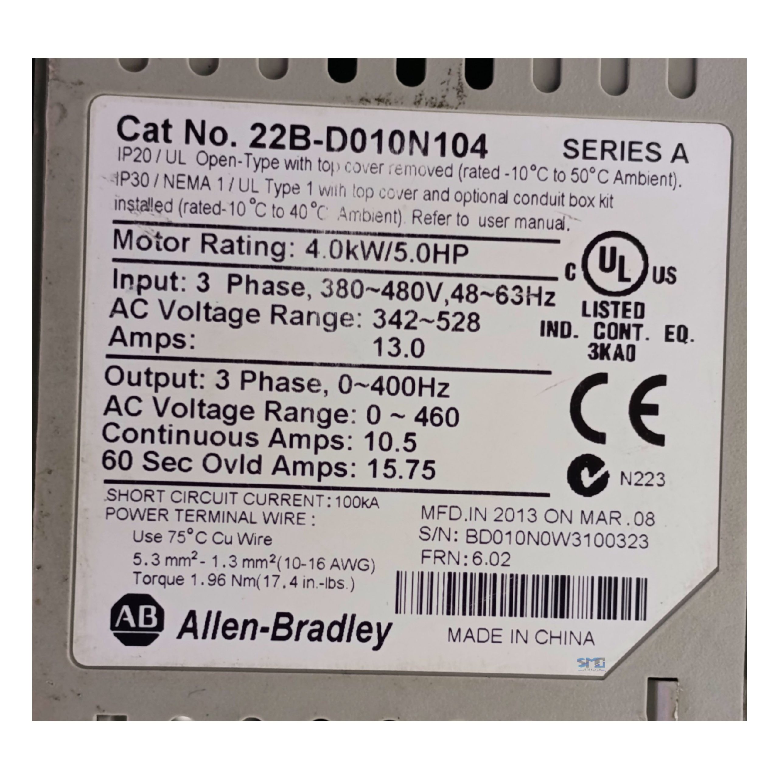 Inversor 380-480V 8,7A 5CV Allen Bradley 22a-d8p7n104