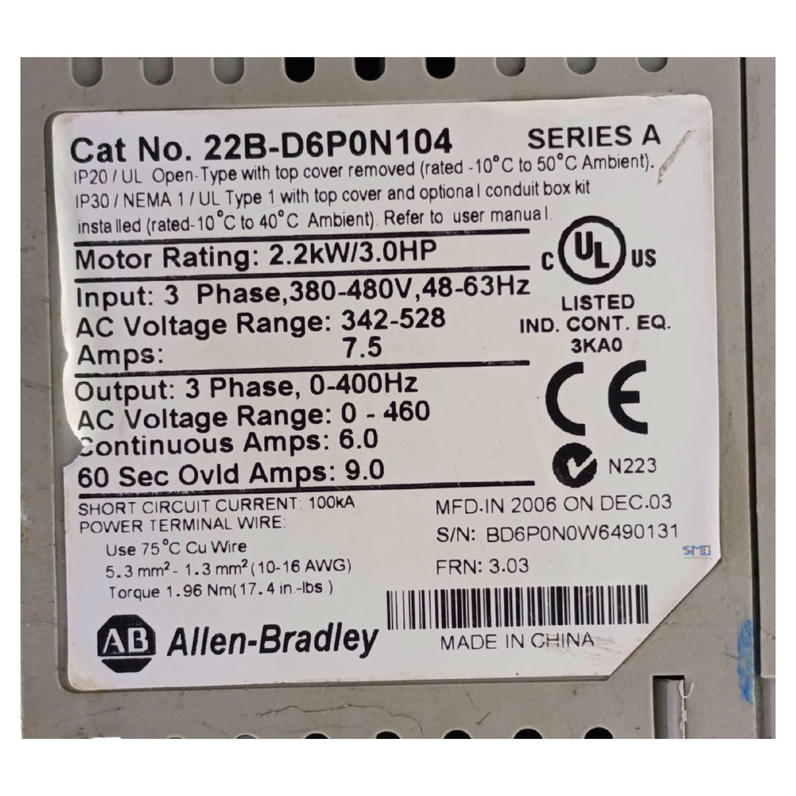 Inversor 380-480V 6A 3CV Allen Bradley 22b-d6p0n104