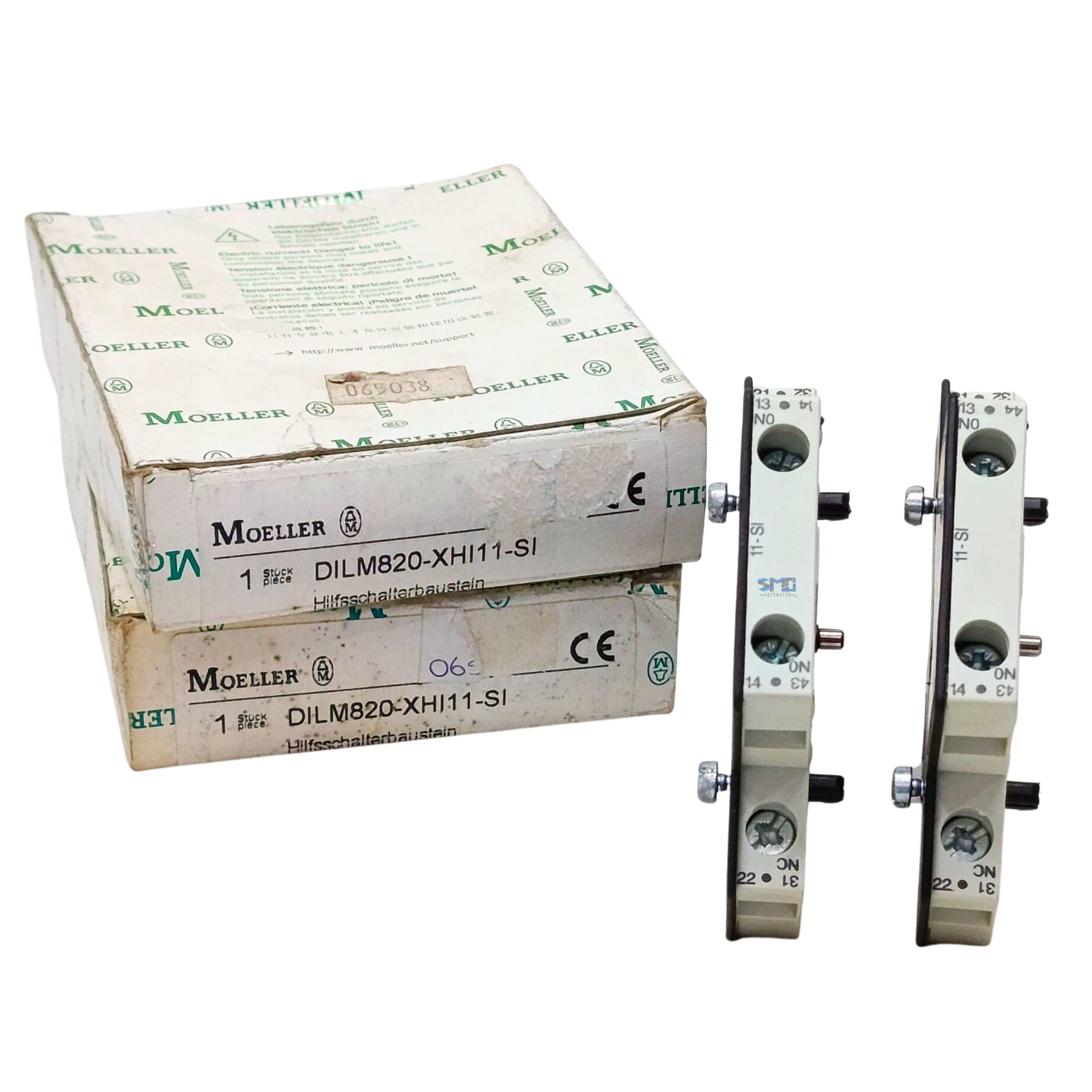 Kit contendo 2 unidades de Contato Auxíliar Moeller, modelo DIL-M820-XHI11-SI, produto novo, ideal para reposição, montagem de painéis elétricos e aplicações em comandos industriais. Os Contatos Auxíliares Moeller são reconhecidos pela qualidade, durabilidade e confiabilidade, garantindo excelente desempenho em sistemas de automação e controle.