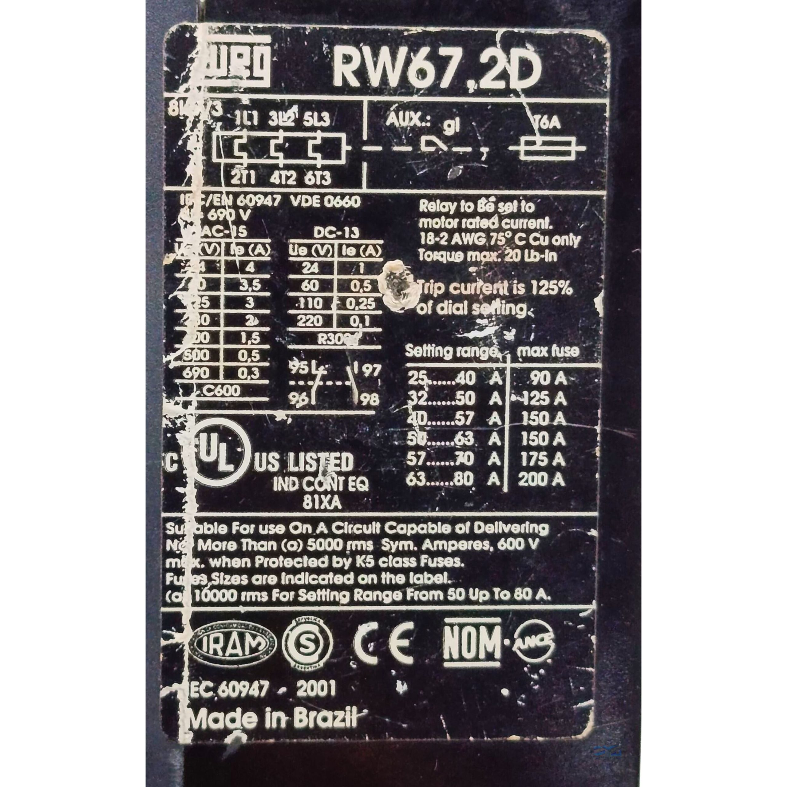 Relé de Sobrecarga 690v Weg Rw67.2d – Seminovo