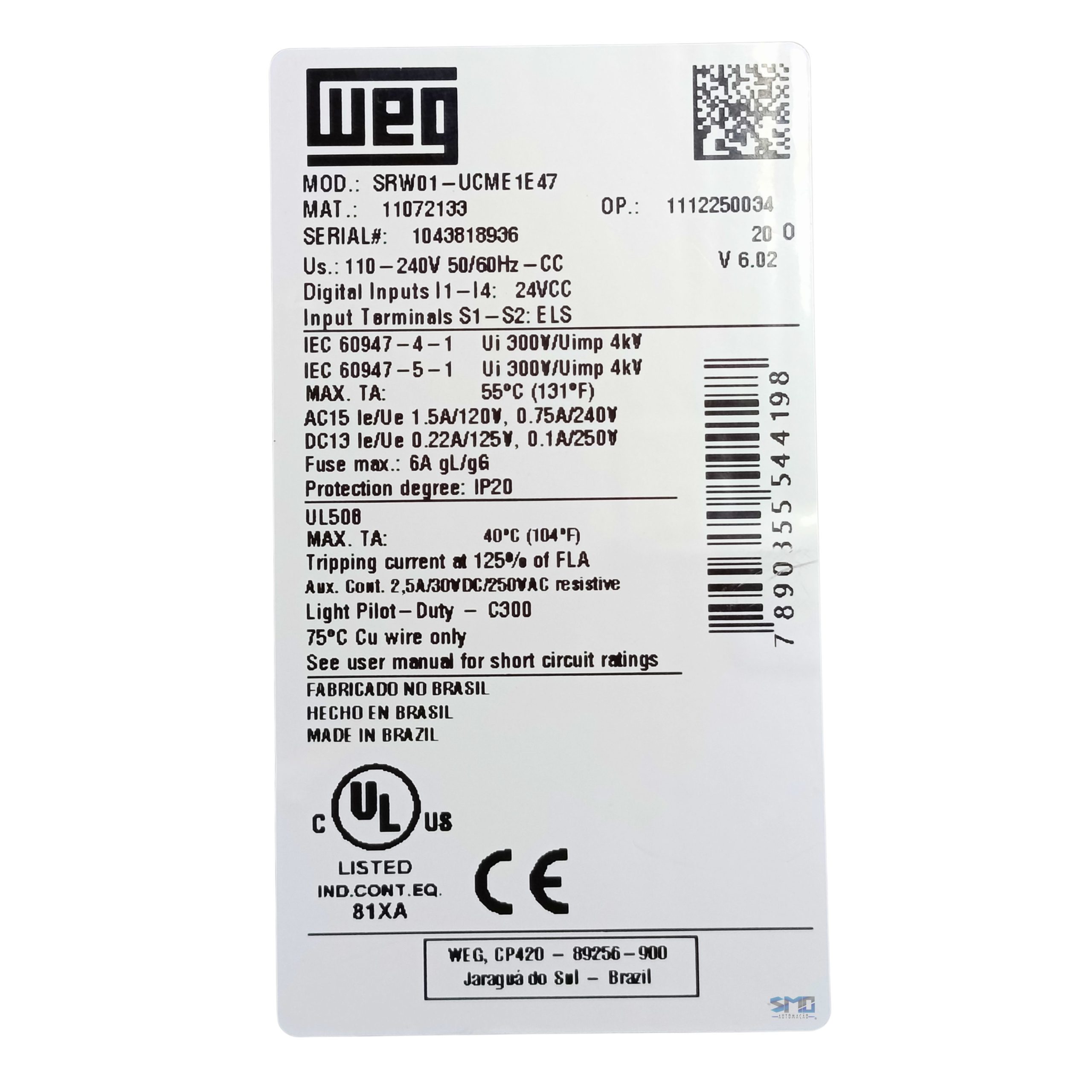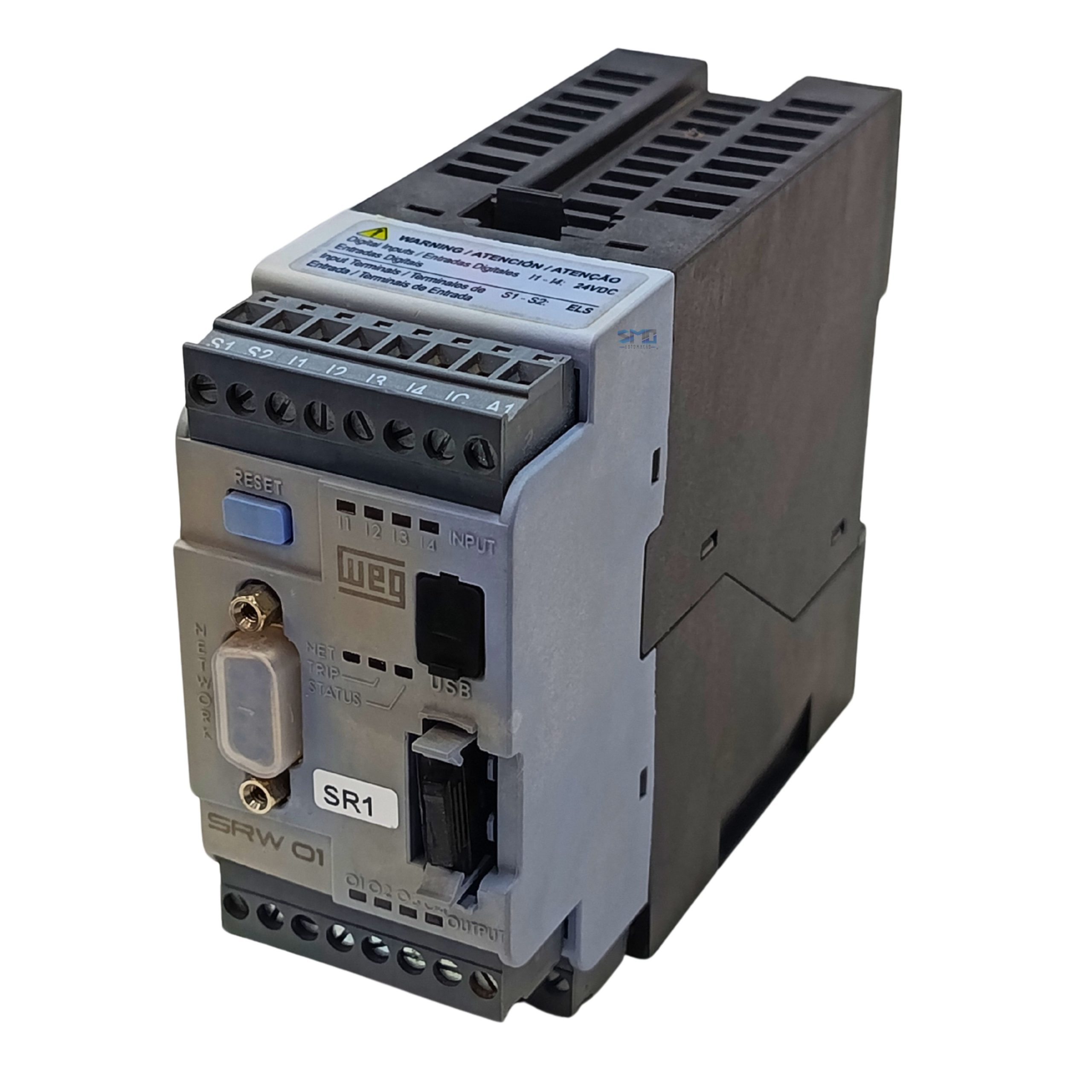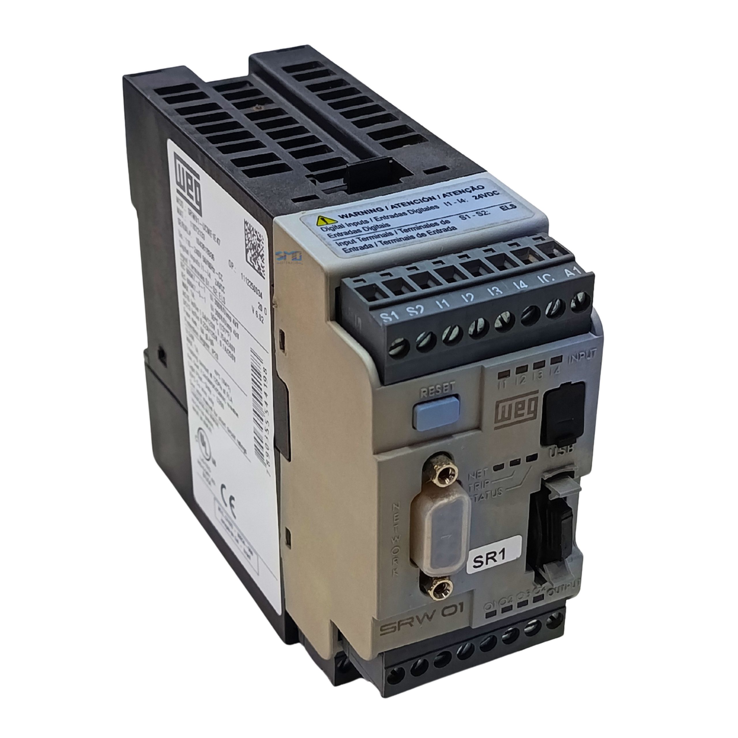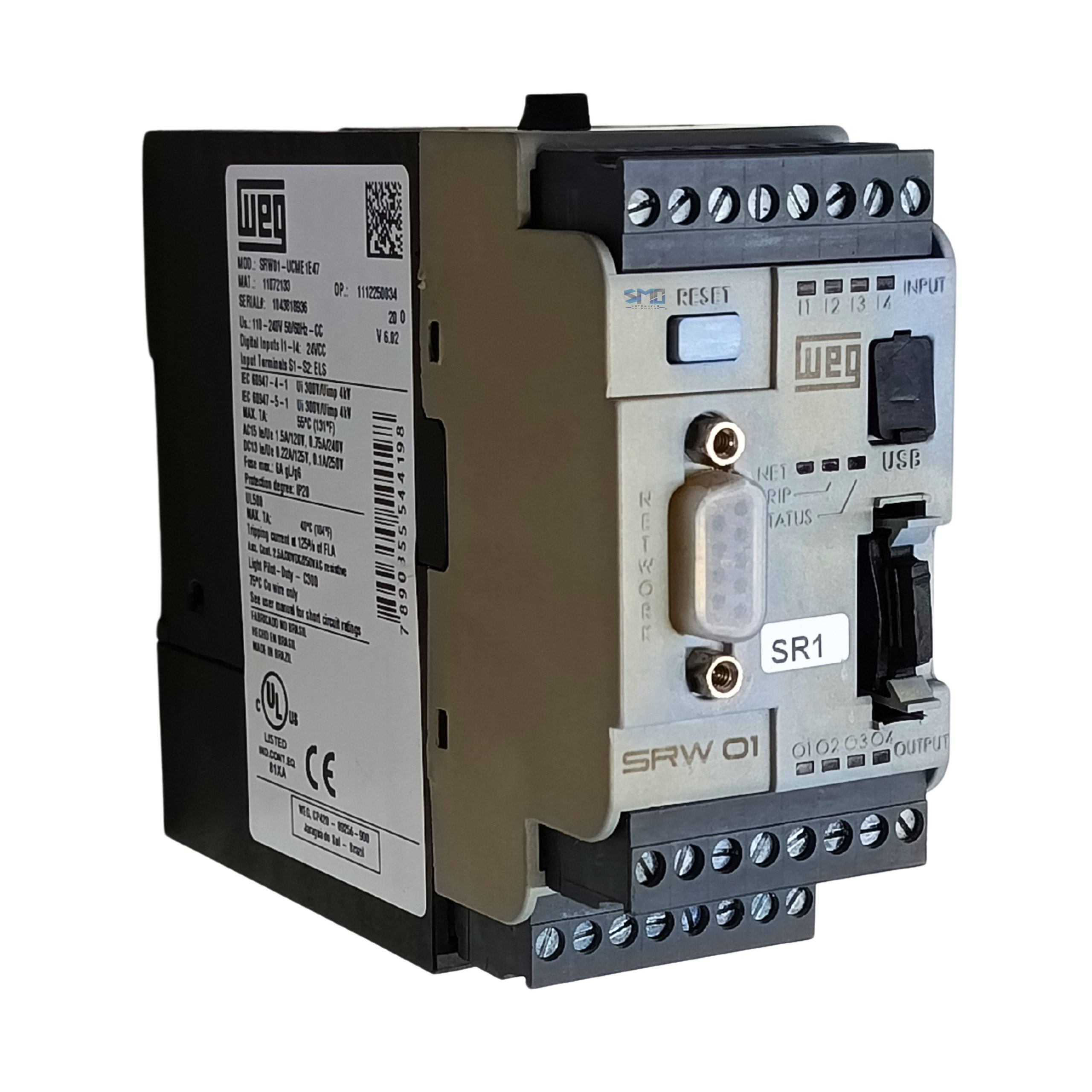 Relé Inteligente SRW 01 110-240V Weg seminovo, modelo SRW01-UCME1E47, em perfeito estado de funcionamento e totalmente testado por nossa equipe técnica. Produto confiável, ideal para reposição, manutenção ou ampliação de sistemas industriais, garantindo excelente desempenho e custo-benefício.