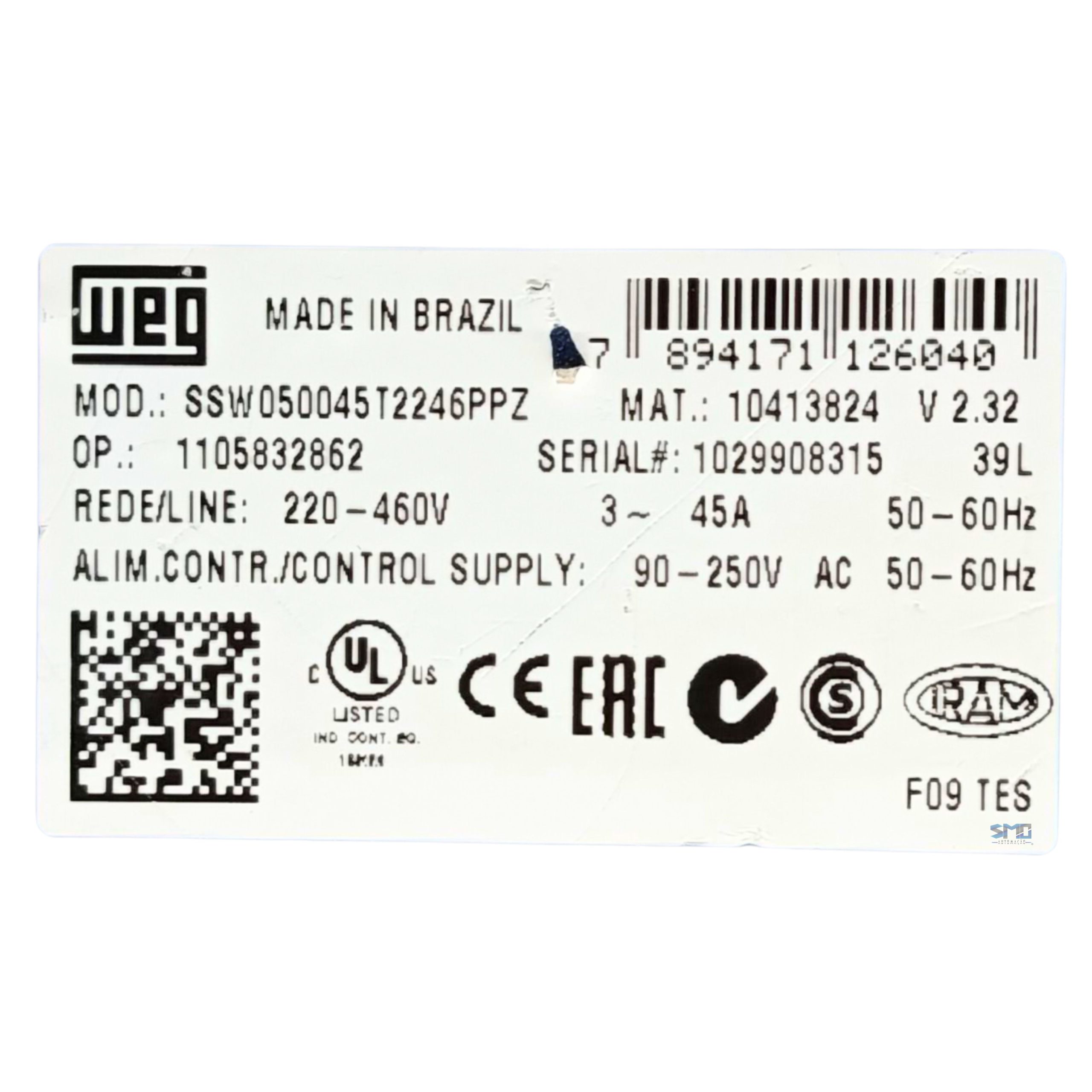 Soft Starter Ssw05 45a Weg, modelo SSW050045T2246PPZ seminovo, em perfeito estado de funcionamento e totalmente testado por nossa equipe técnica. Produto confiável, ideal para reposição, manutenção ou ampliação de sistemas industriais, garantindo excelente desempenho e custo-benefício.