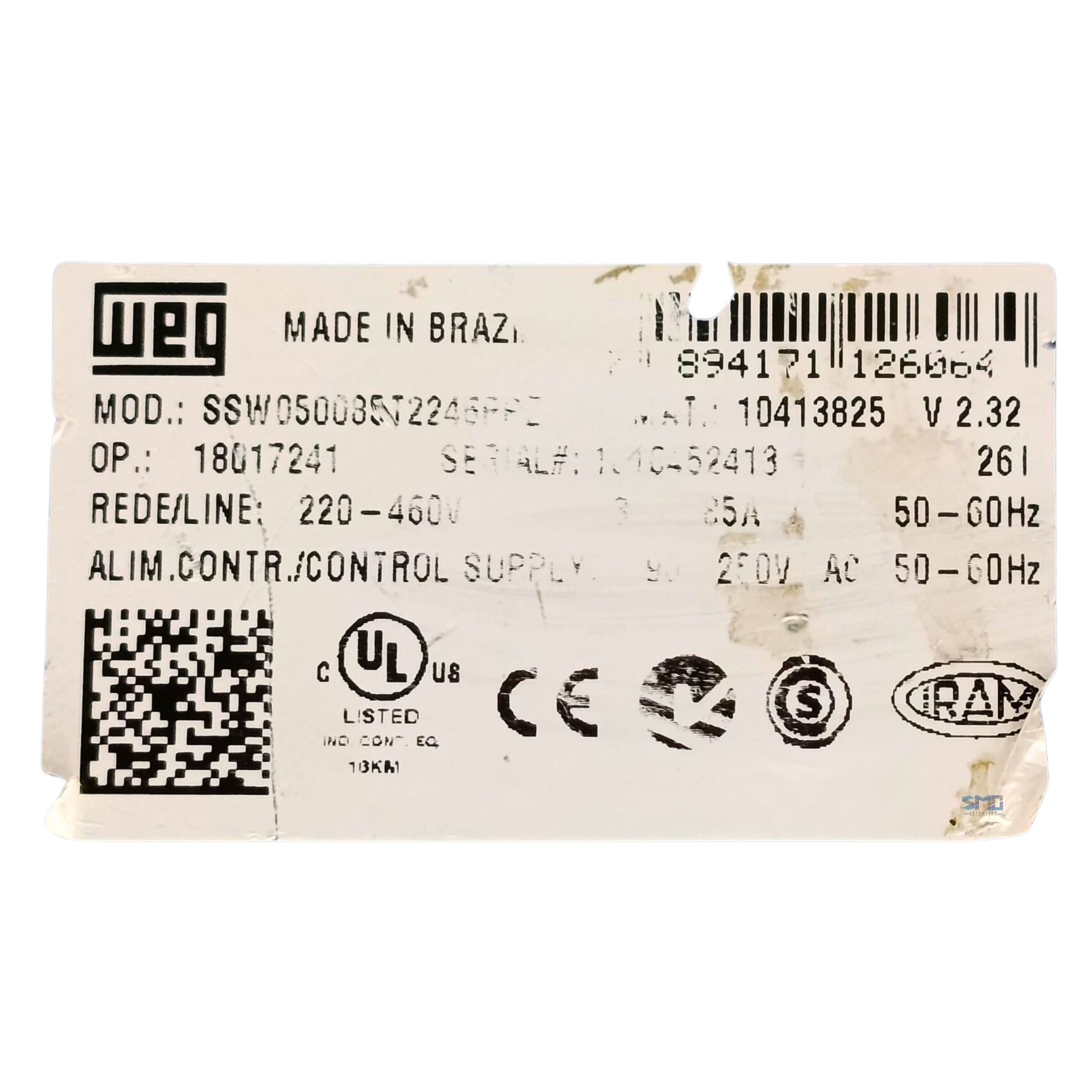 Soft Starter Ssw05 85a Weg, modelo SSW050085T2246PPZ seminovo, em perfeito estado de funcionamento e totalmente testado por nossa equipe técnica. Produto confiável, ideal para reposição, manutenção ou ampliação de sistemas industriais, garantindo excelente desempenho e custo-benefício.