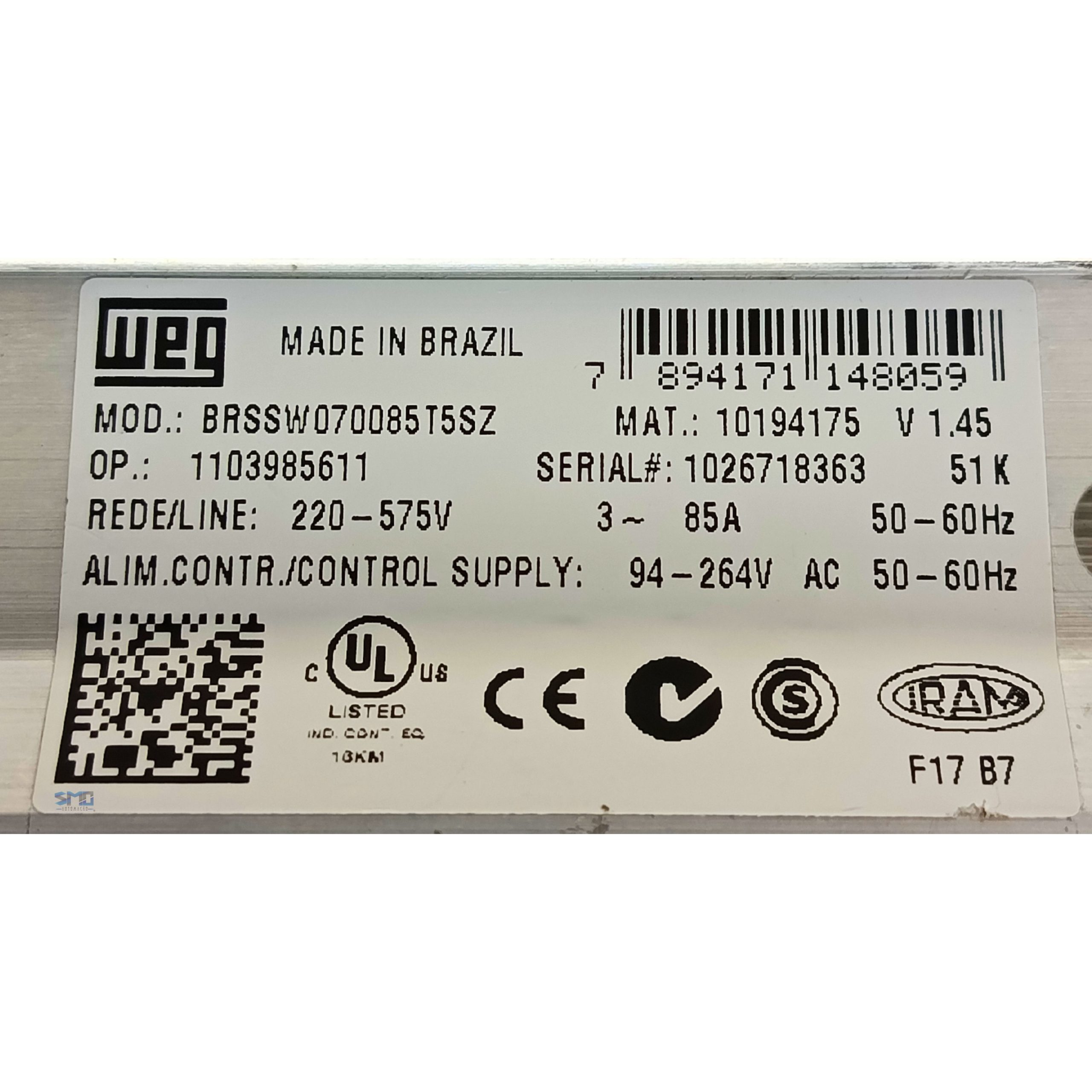 Soft Starter weg 85a, modelo SSW070085T5SZ seminova em perfeito estado de funcionamento e totalmente testada.